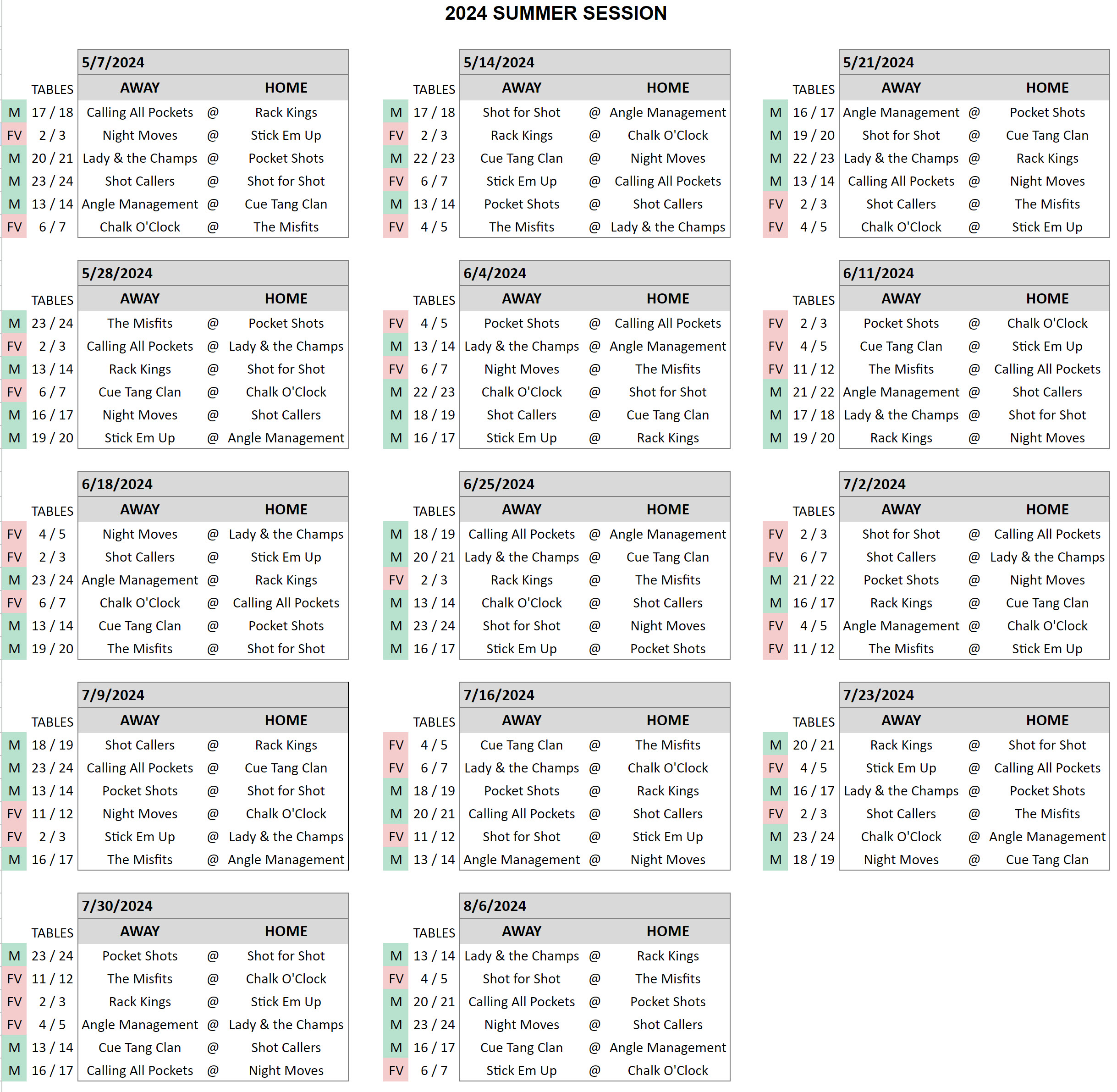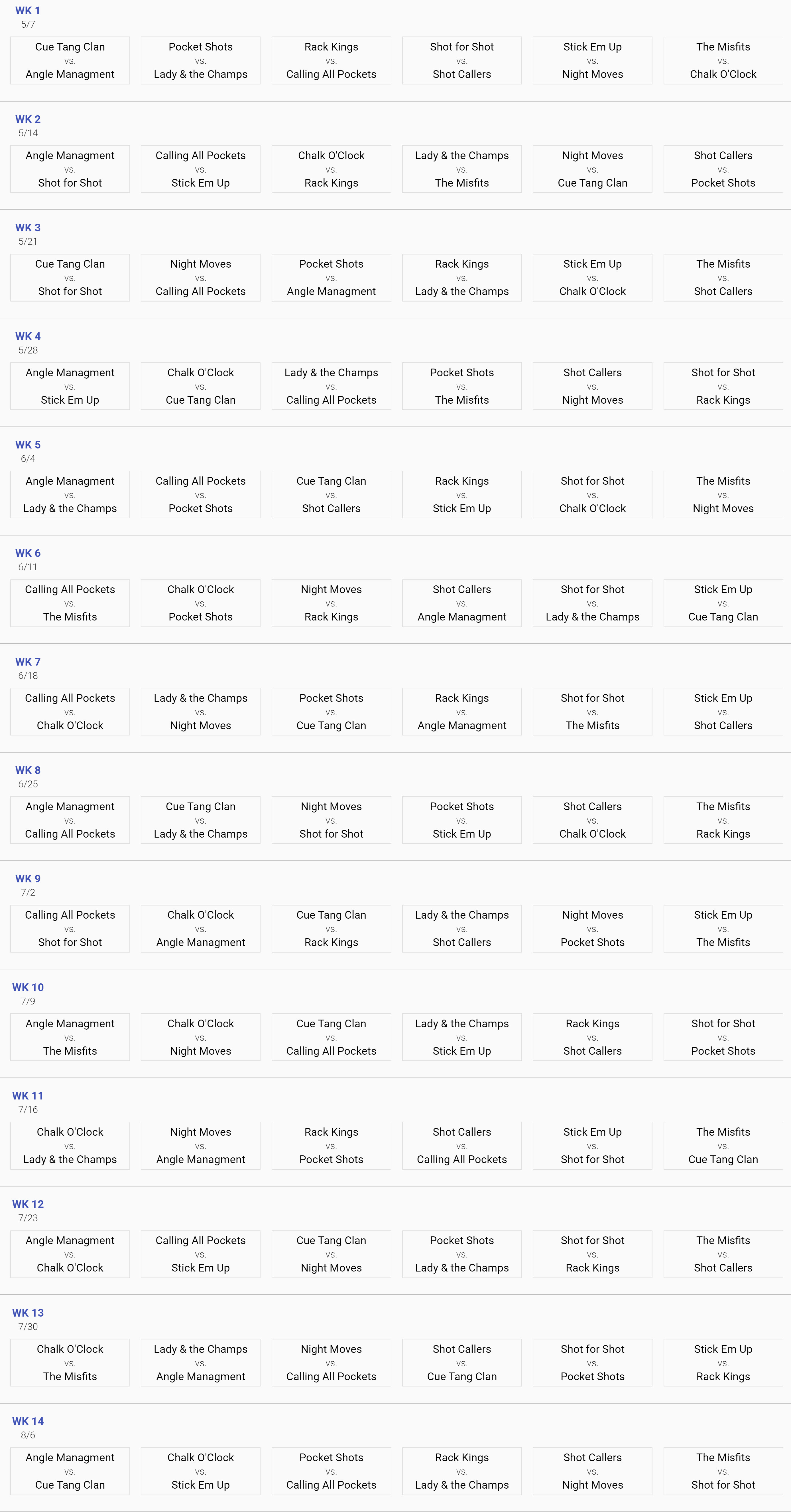 Jump to Standings | Jump to Table Assignments | Jump to Updates